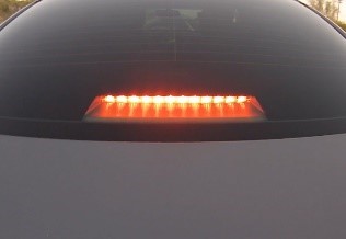 Rear-end collision deterrent that rapidly pulses your third brake light 4 times when you press the brake pedal.